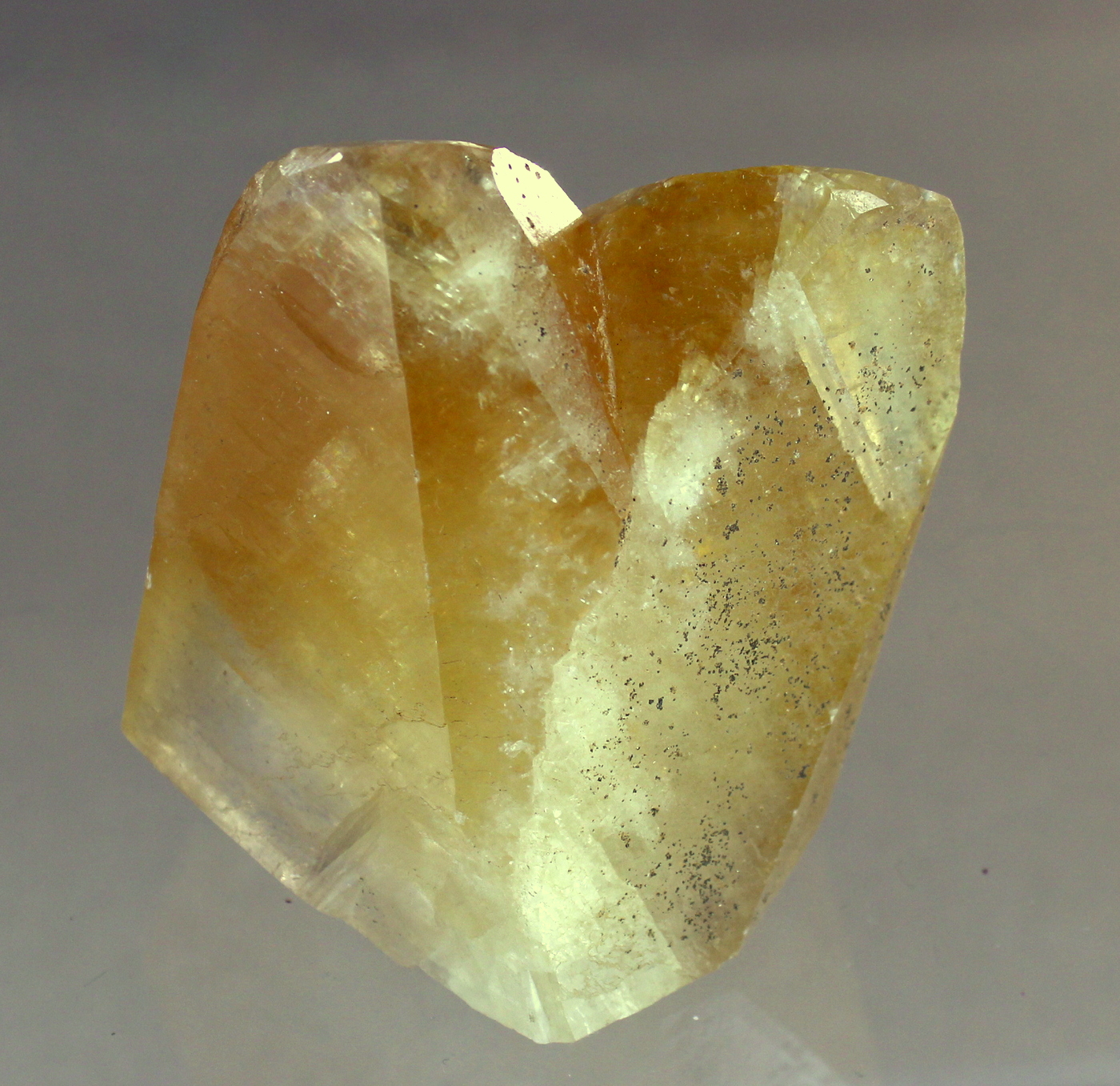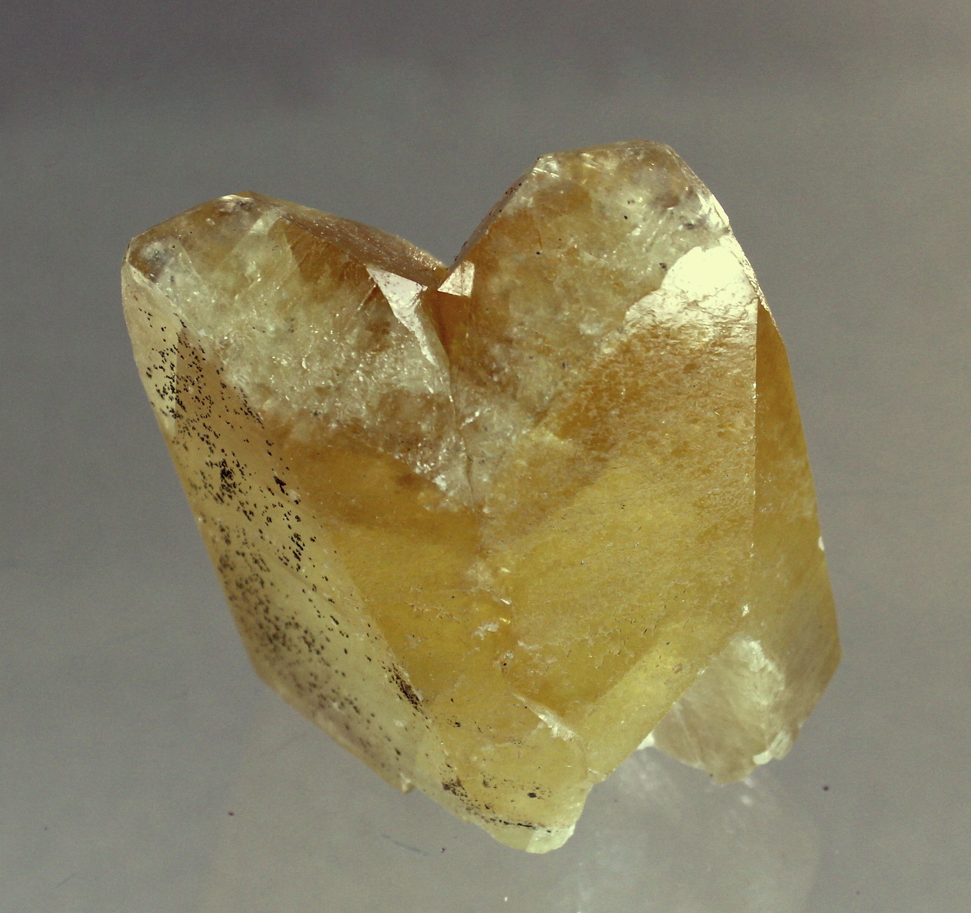 These Tri-state twins are always such a treat to see. Save for the bottom, there is no damage, and the translucency is quite good. I love the frosted appearance at the V notch on one side and the Y formation on the other side. Tiny sphalerites(?) are embedded on several faces. Ex Jim and Paula Wilson.