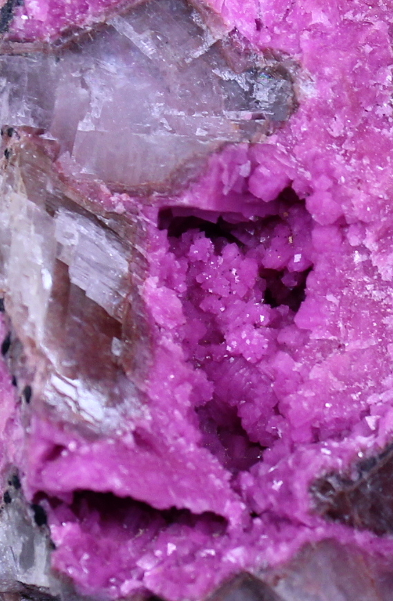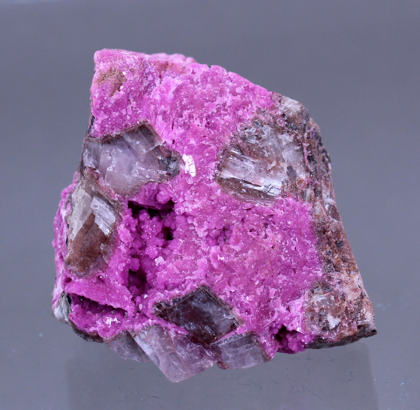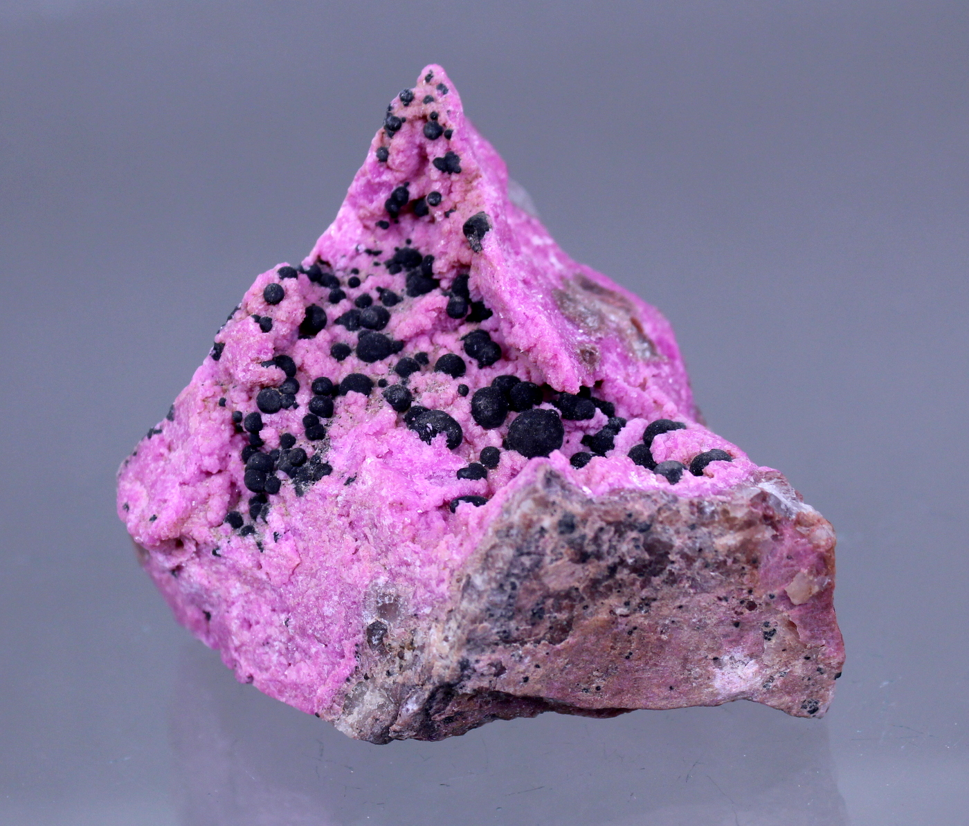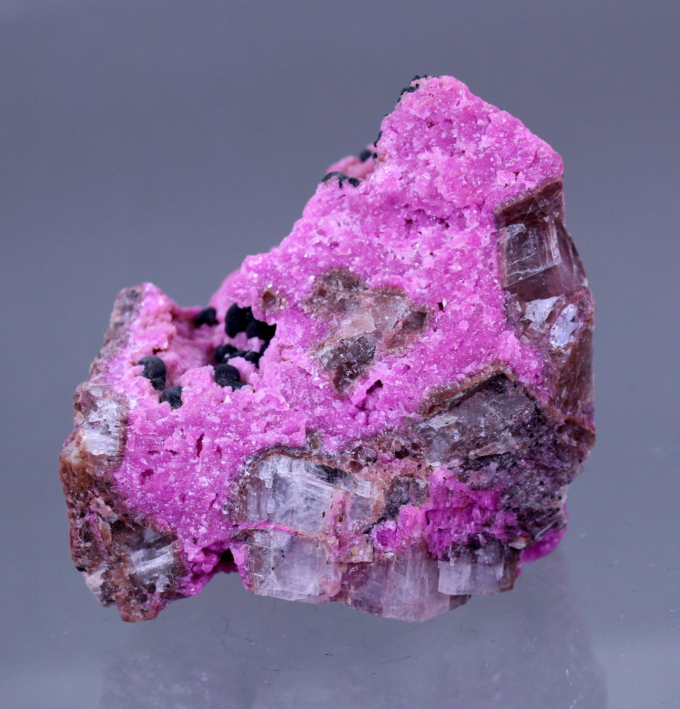A startlingly deeply colored mass of magenta Cobaltoan Calcite with sperules of deep green Kolwezite. Add color to your cabinet!