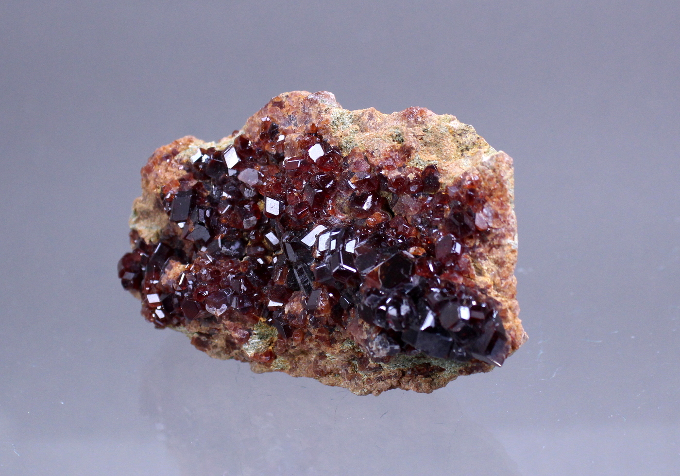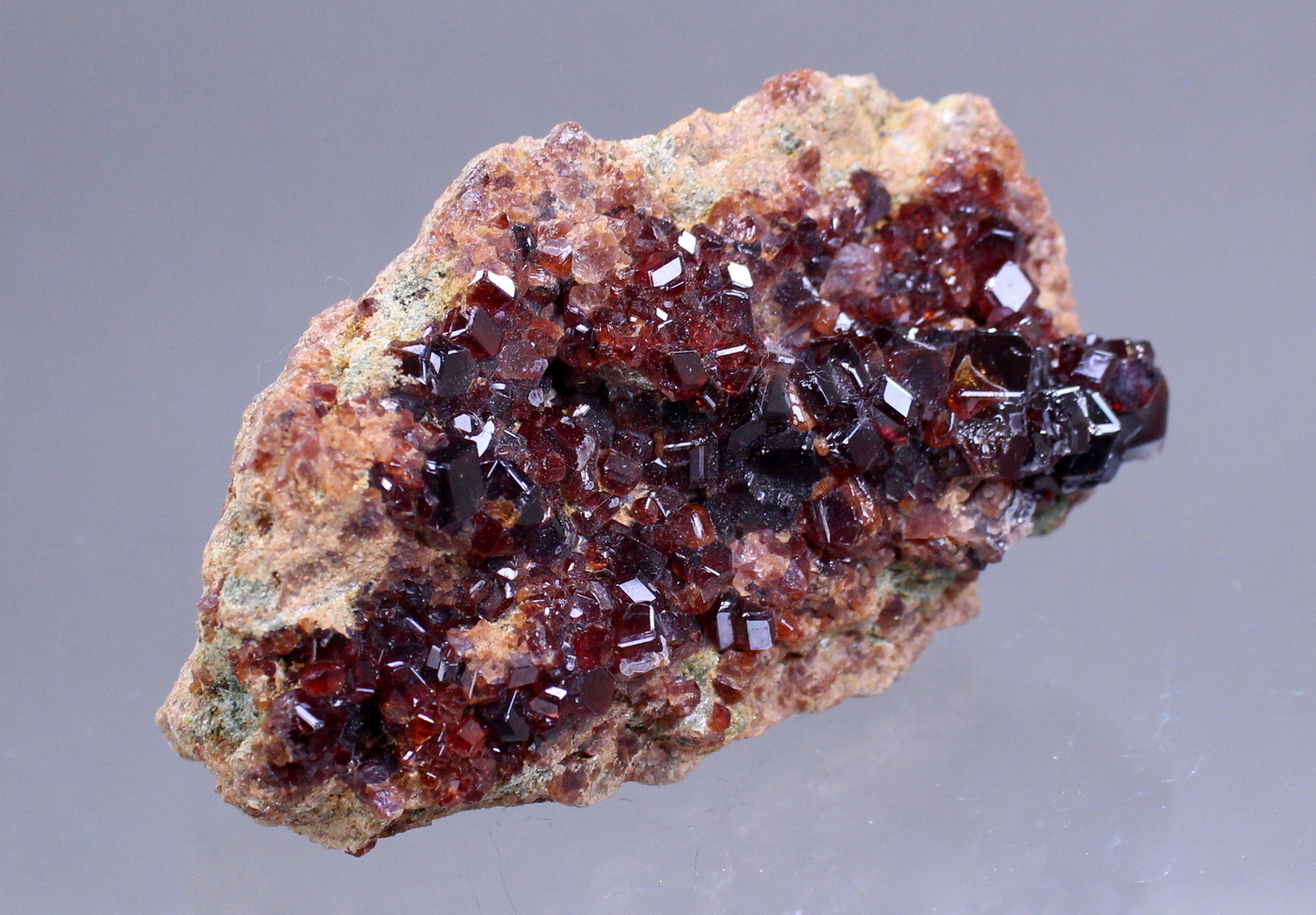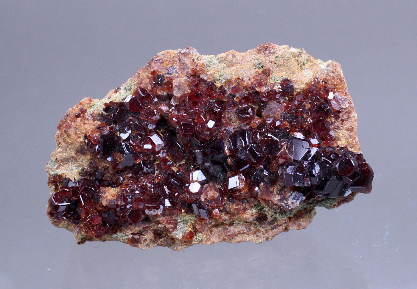 A seam of richly appointed lustrous blood red Grossulars to 1cm. Impeccable condition and extremely well balanced. Mined circa 2006-2009.