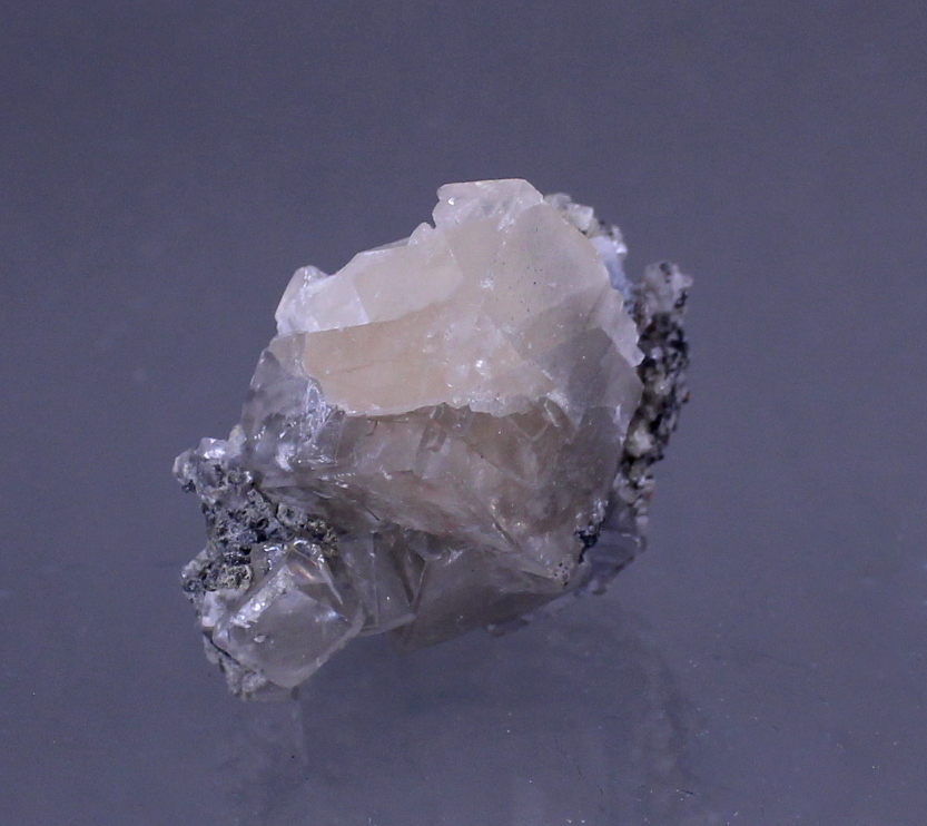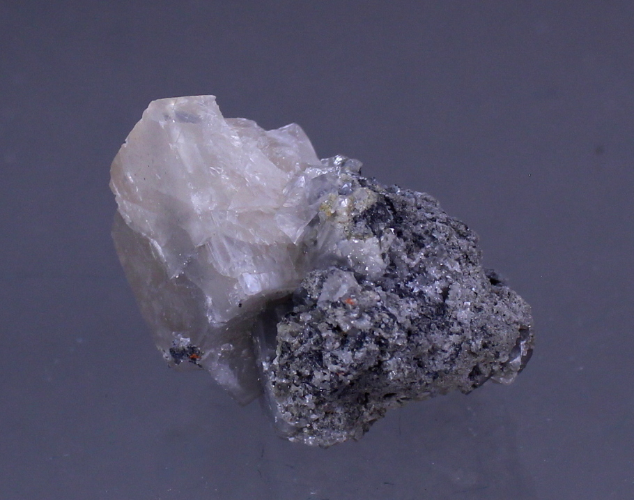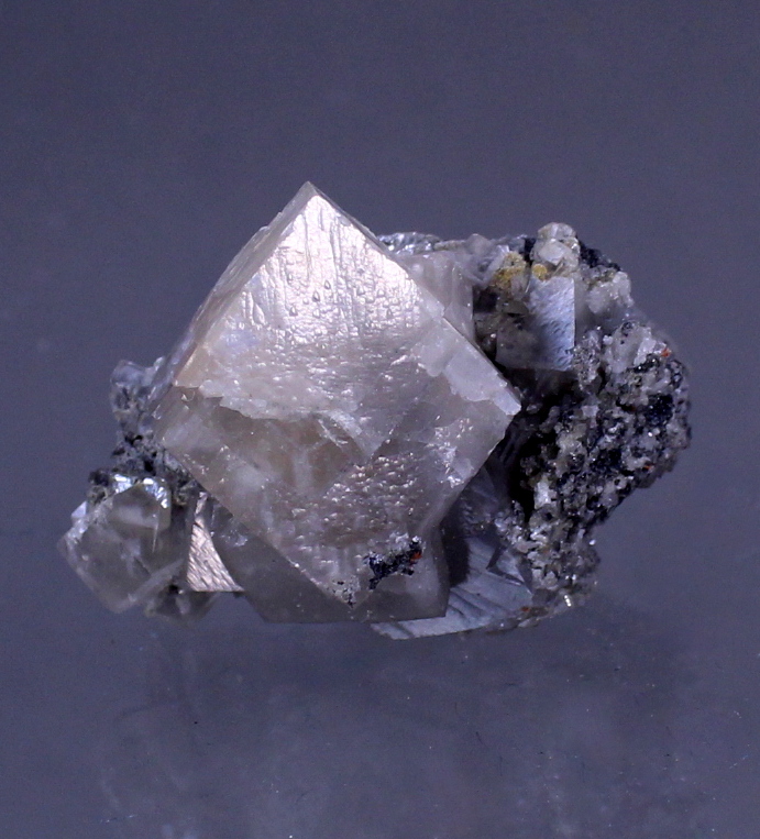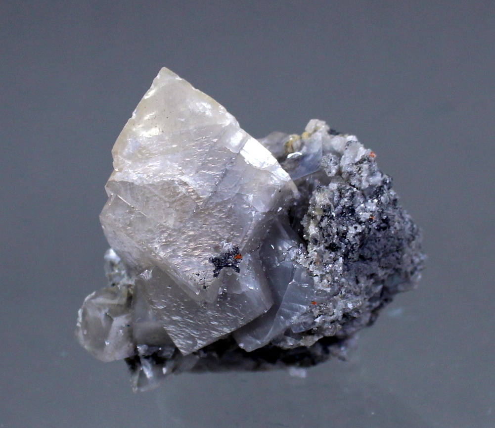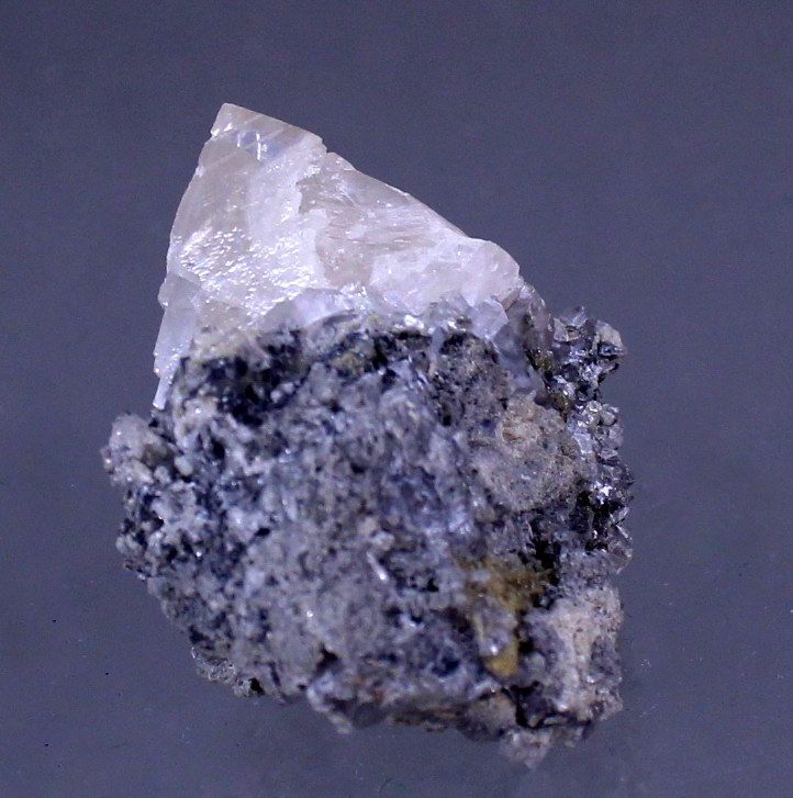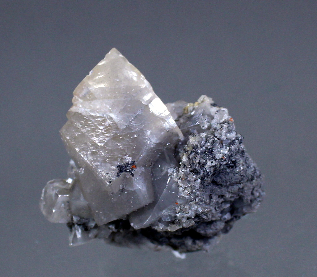 Dating back to the 1956-57 time period, this specimen came to light while work was being completed on the DeWet shaft. Mining had reached around the 20th level. This smithsonite has a near perfect (very back is contacted) 2.5cm rhomb perched upon a 1.3cm rhomb and centered in the matrix. Ex Ben Chomiak collection.