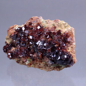 A magnificent deep blood red 1.2cm idealized crystal perched on a fully realized glassy orthoclase crystal. Former Obodda stock (with label).
