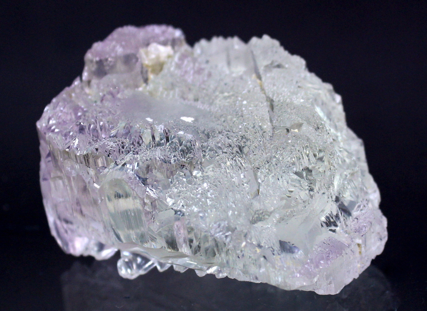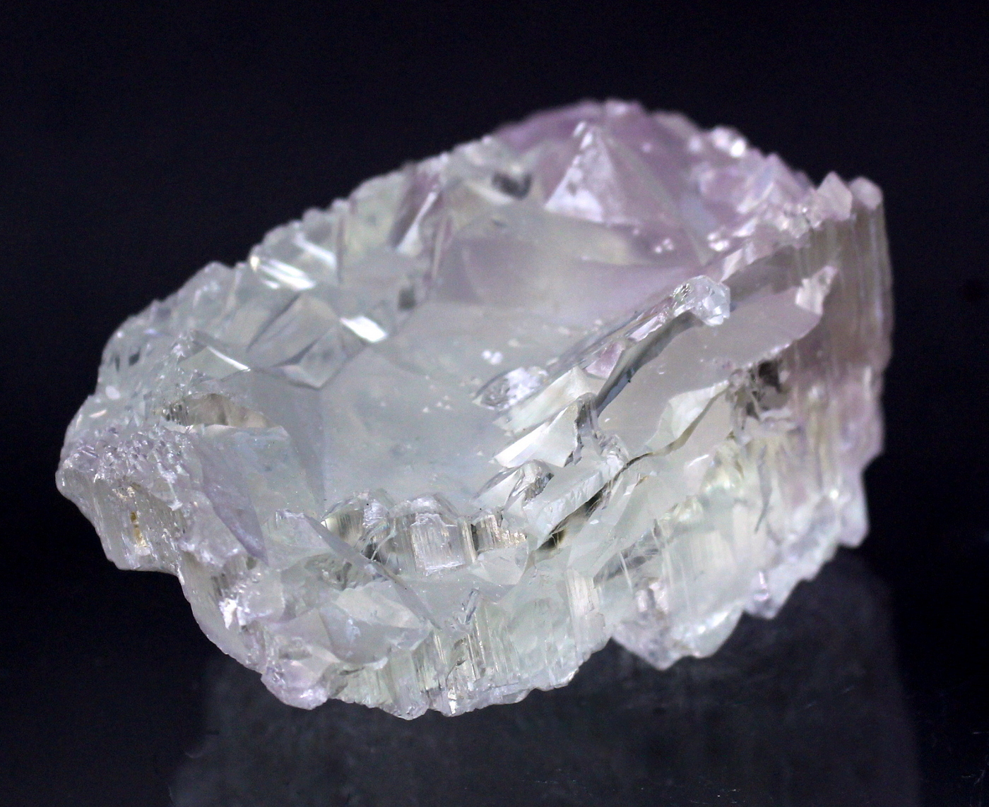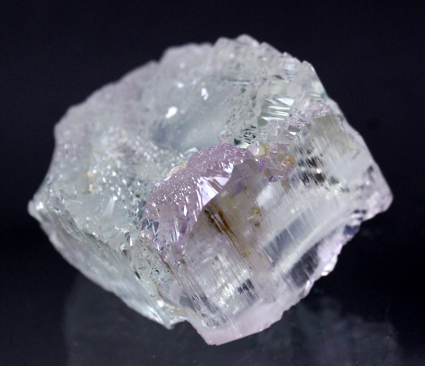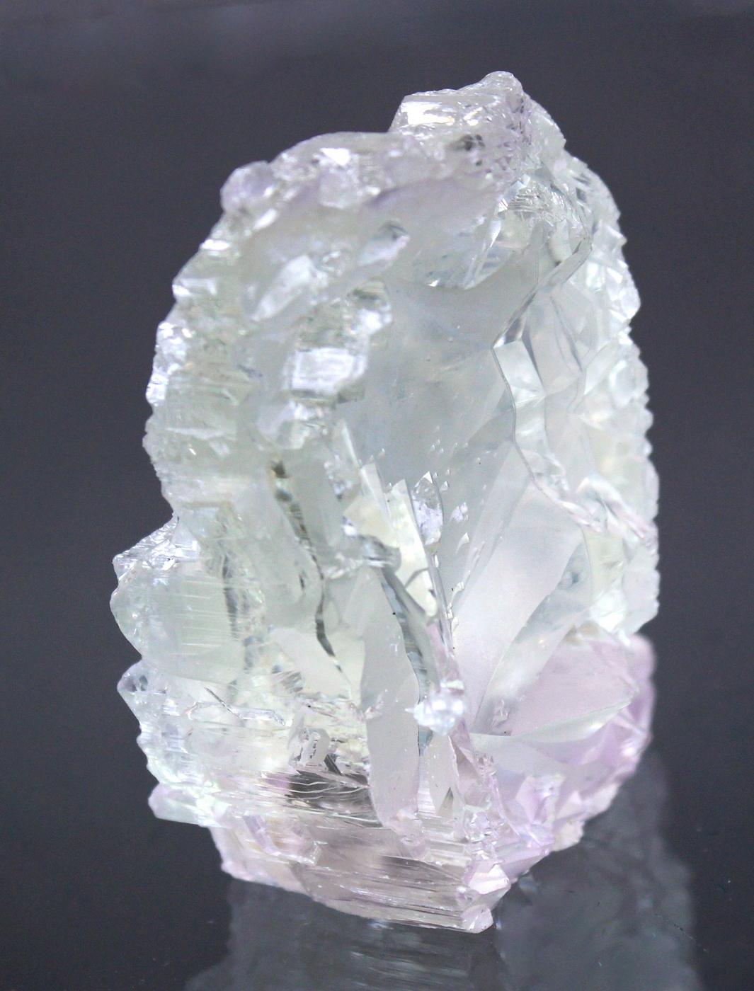 WOW. This floater crystal is totally sculpted. The complex faces are haphazard and vary around the specimen. The lilac color reveals itself at the very top and bottom of the specimen. No damage. A prize in any collection. Ex Phillip Potter